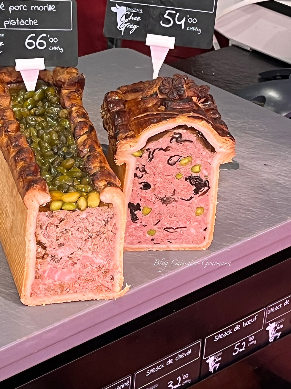 Lors de mes achats à Sensales, ce jour : le pâté de porc et veau, 54.- chf le kl.