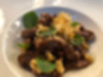 Mon entrée arrive : sauté de rognon et lard fumé au vinaigre de framboise à 22.- chf.!