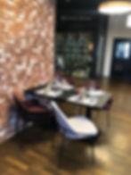 À l’origine c’était une grande salle communale (une salle des fêtes), mais les grands lustres, les chaises design, le mur en pierres apparentes et la cave vitré, en fait ,c'est un lieu agréable et bien pensé.