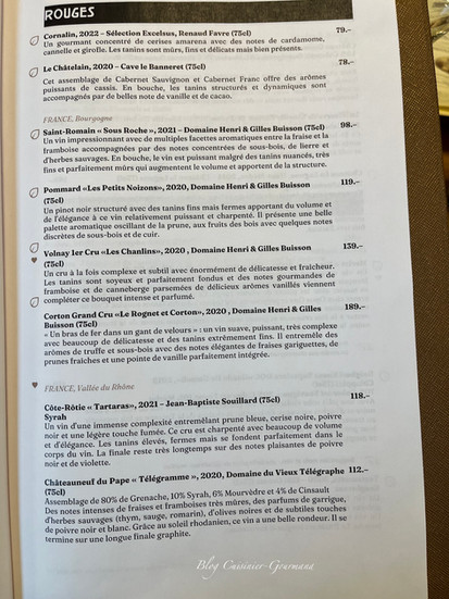 En consultant les cartes, je me fais plaisir avec un verre de Villette « Les Barberonnes » 2022 du Domaine Croix Duplex.