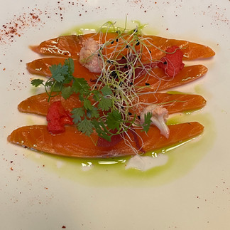 Alors pour débuter le bal, je me laisse tenter par le saumon gravlax aux choux-fleurs framboisés à 17.- chf.